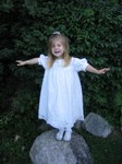 Ella all dressed up on a big rock