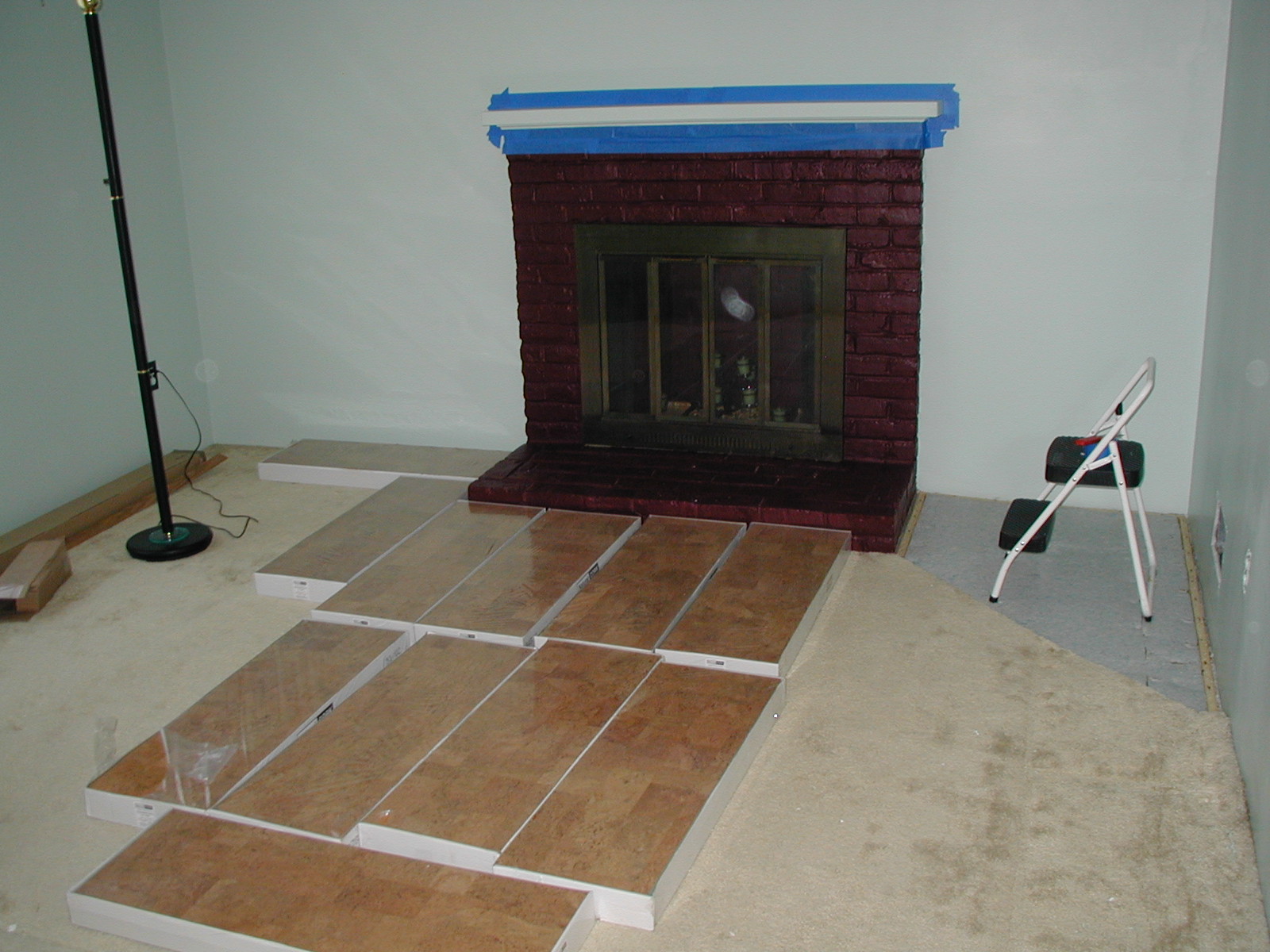 row of planks near fireplace