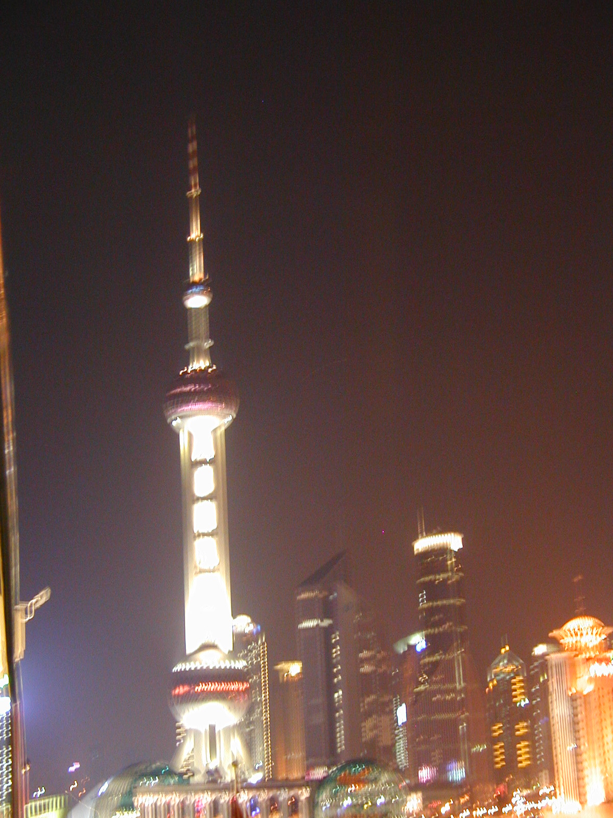 Fuzzy Oriental Pearl TV Tower viewed rooftop