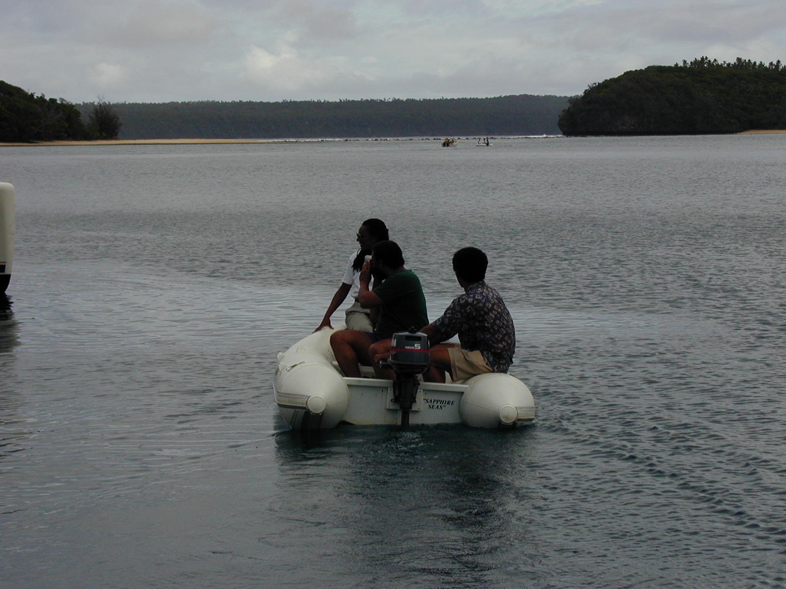 Linda, Bruce & Captain in the dingy