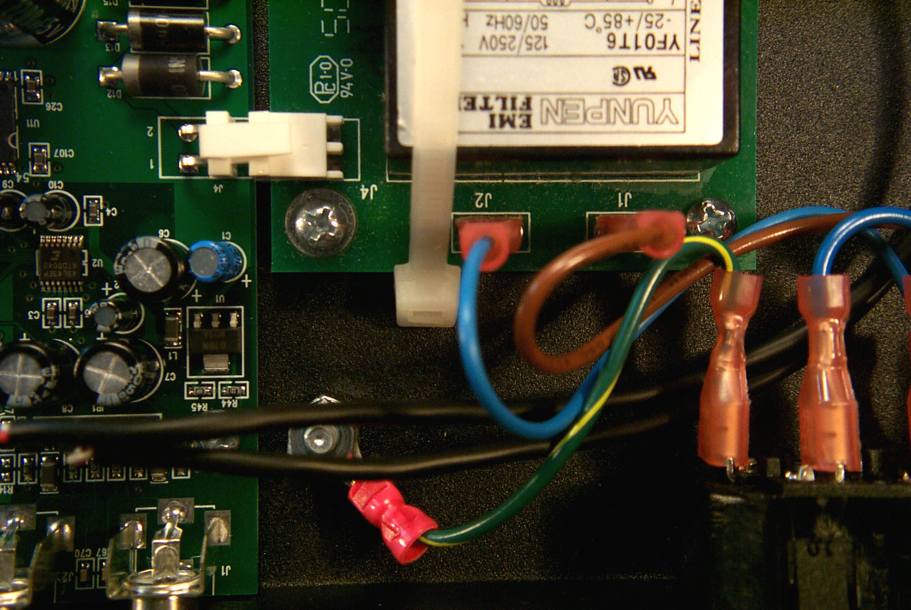 directly under the 110VAC power inputs on their way