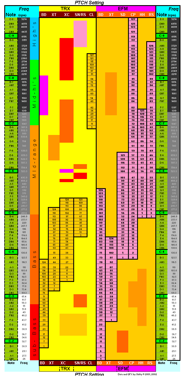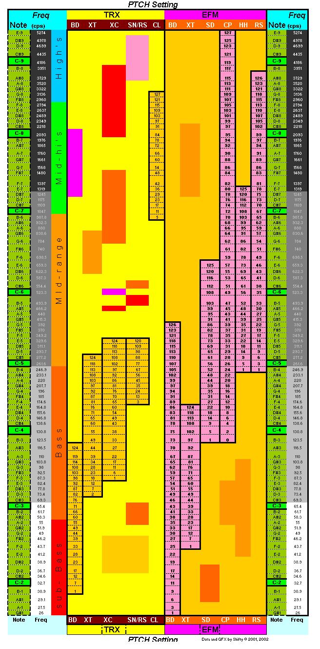 settings to get frequencies on the scale for 10 different Machinedrum instruments!