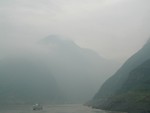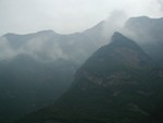Fluffy clouds tip over the valley edge